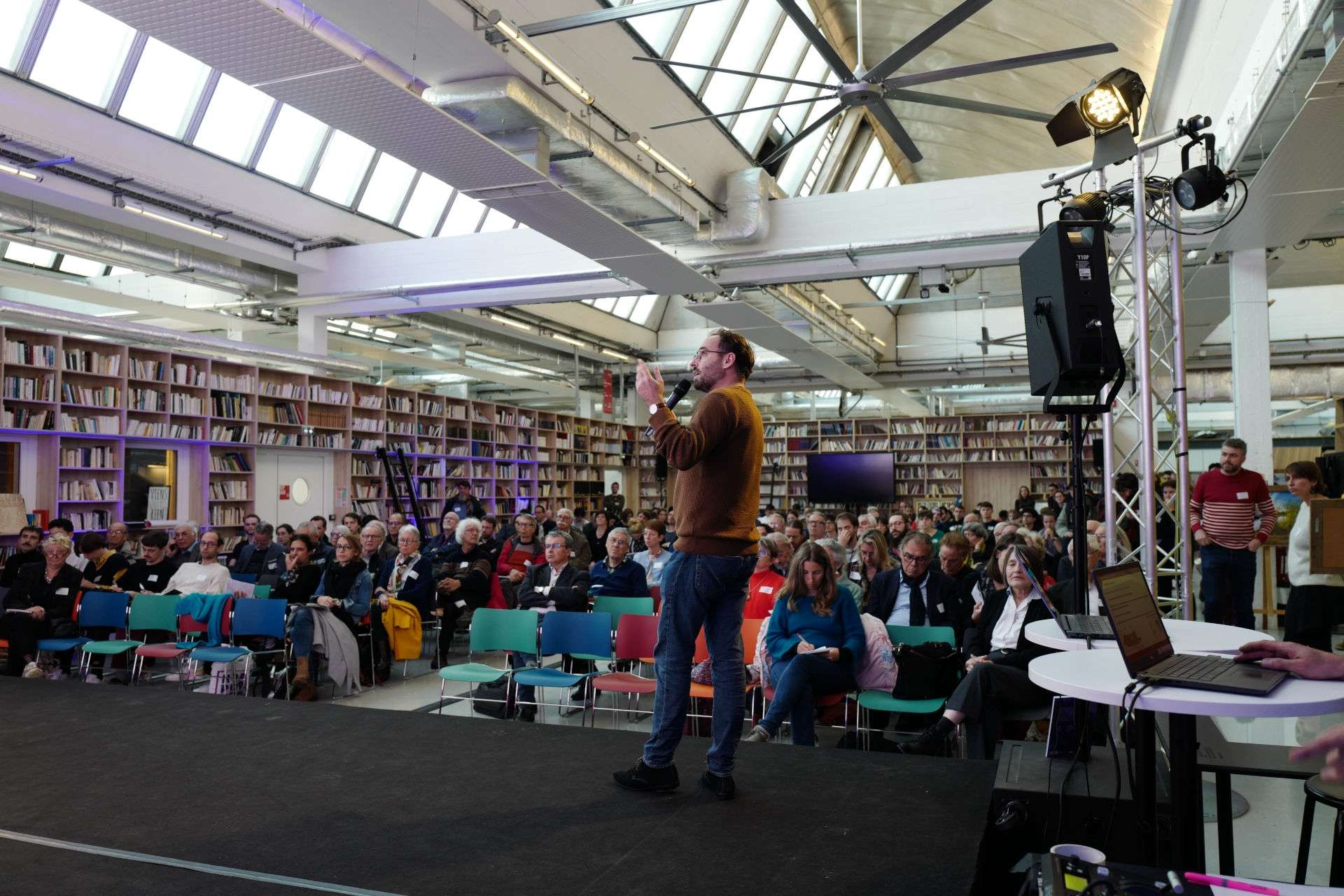 "Si la disposition du public se trouvait en cercle, c'était fort sympathique, celle des intervenants en petit rond au milieu, pas du tout. Face à face, ils ne se donnaient pas la peine de parler assez fort, la disposition faisait un peu "entre soi"."
