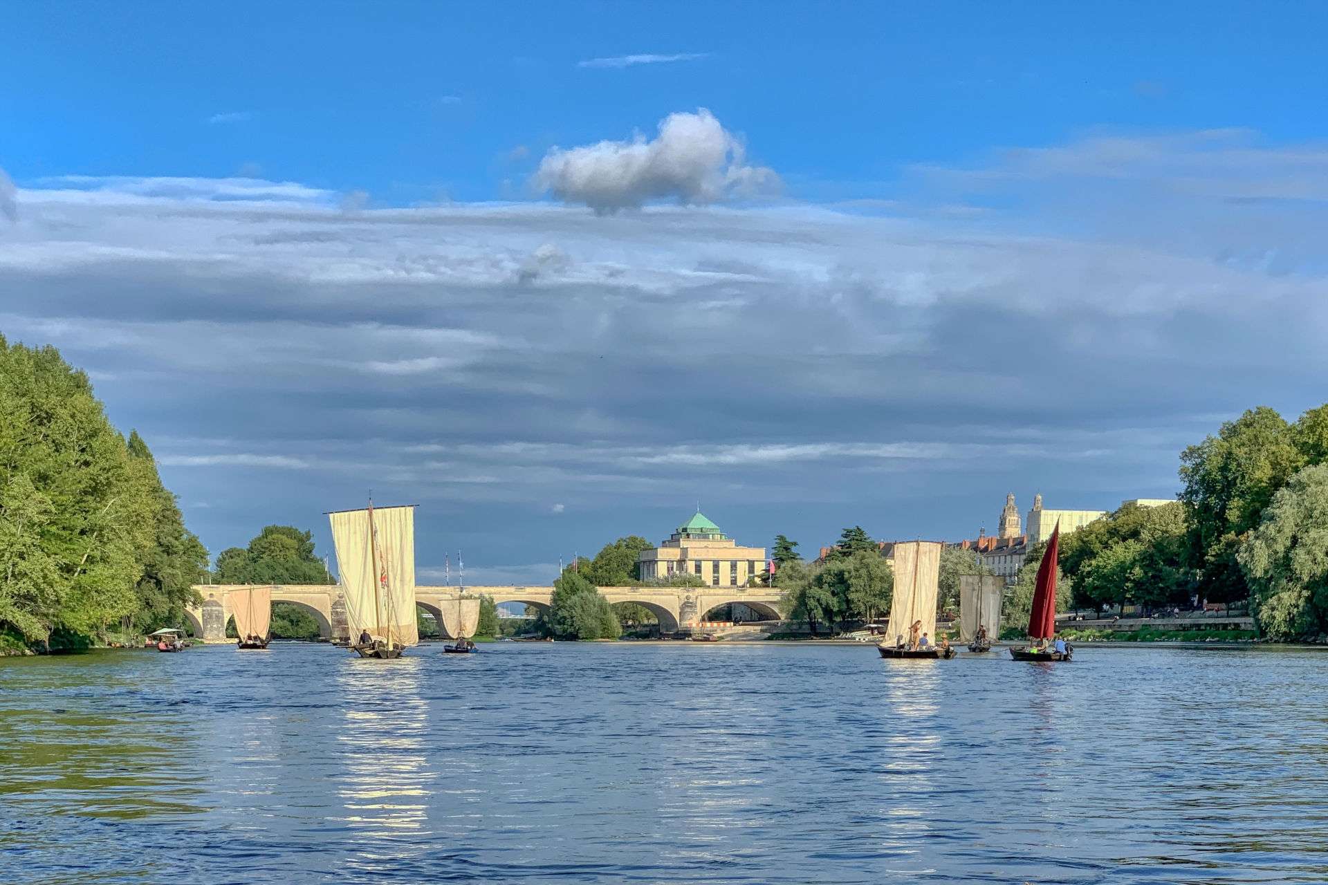 Une flottille d'une vingtaine de bateaux a embarqué 50 mariniers sur l'île Simon à Tours, à l'occasion des assemblées de Loire, pour remonter le cours du fleuve et s'amarrer sur les quais d'Orléans. Elle a fait escale du 15 au 17 septembre au port de la Creusille à Blois. Une pause bien méritée dans cette grande remontée par voie d'eau vers le 10e Festival de Loire, plus grand rassemblement européen de la marine fluviale, où 30 bateaux et 80 mariniers ont convergé de l'aval !