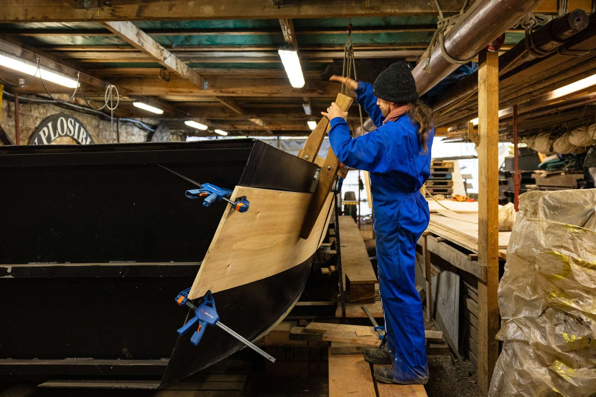 Illustration principale : Construction d'un bateau en aluminium et habillage bois dans l'atelier de l'association Boutavant, à Tours. © Jean-Félix Fayolle